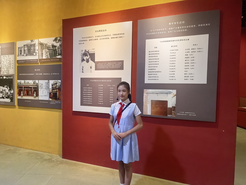 活动内容:红领巾讲解员向观众们讲解粤桂边区革命历史与革命故事,厚植家国情怀。